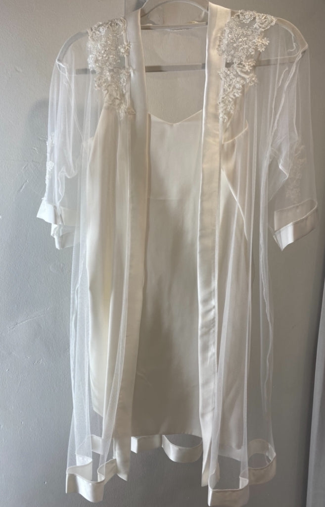 Bata Tita Longoria color white tul transparente y satin en tirante