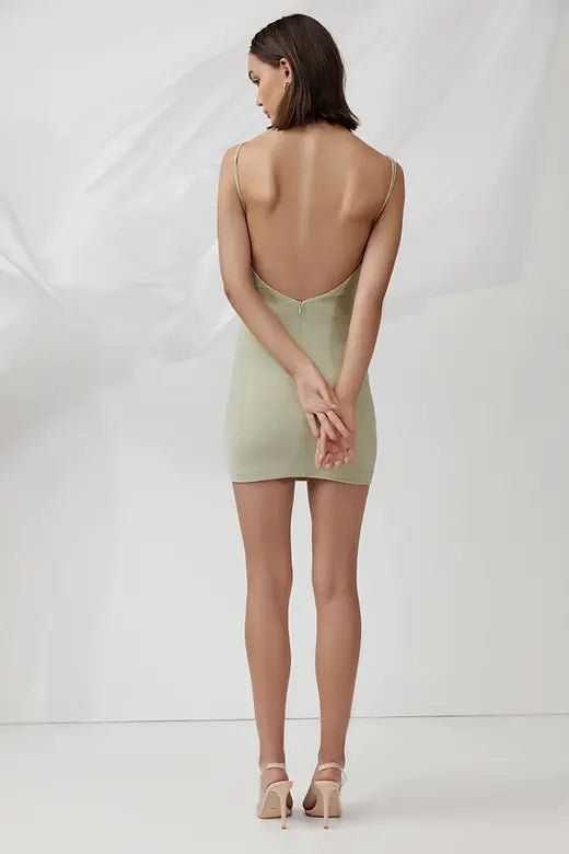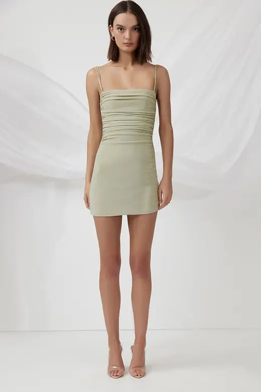 El Vestido Calix está confeccionado con un tejido de punto metalizado y está diseñado para favorecer. Presenta un escote cuadrado fruncido con un sencillo tirante fino que desemboca en un diseño de espalda redondeada y un dobladillo mini.