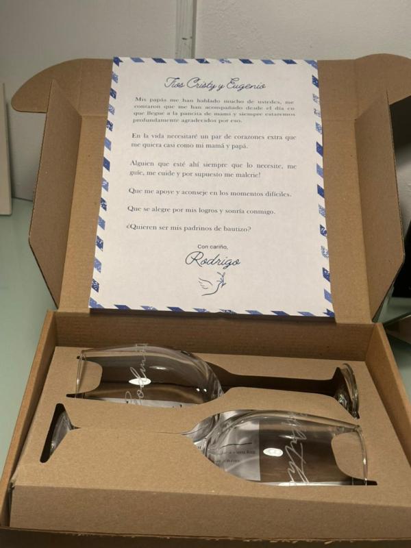 Set de regalo con Copas grabadas que se puede personalizar para cumpleaños, aniversario de bodas, pedido de padrino, dia del padre, Navidad y mas