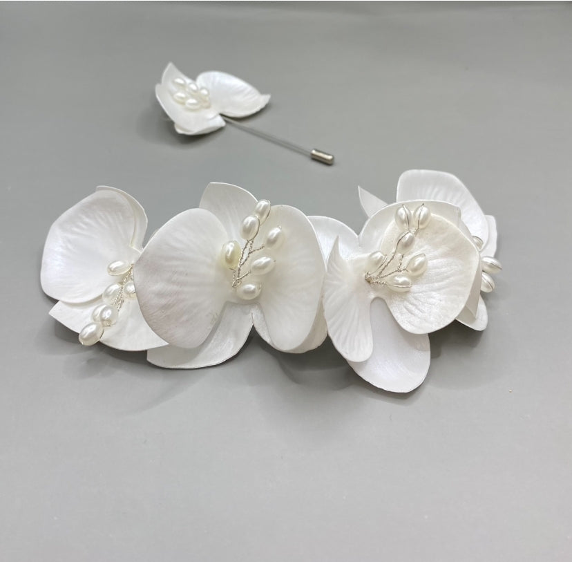 tocado seal up ivory orquidea con boutoniere de orquedea