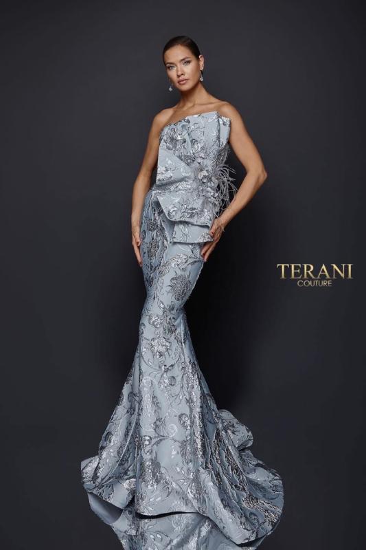 Talla 10 plata mangas caidas corte sirena de brocado