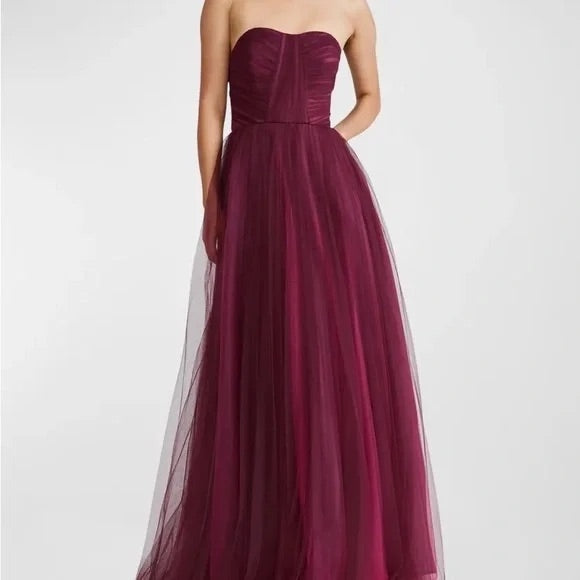 ZAC POSEN TALLA 4 COLOR MORADO STRAPLES DRAPEADO FALDA A