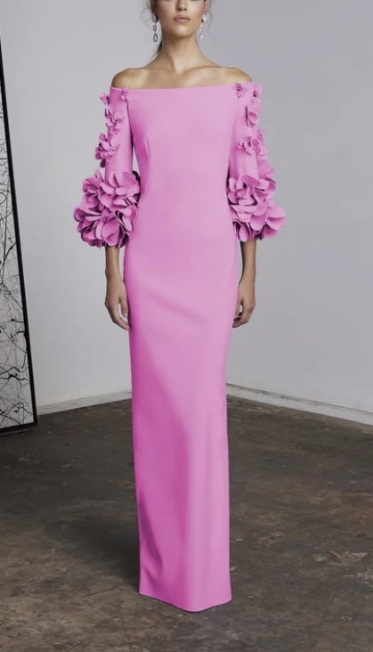 Merci talla 8 color rosa escote barco palabra de honor manga 3 /4 petalos