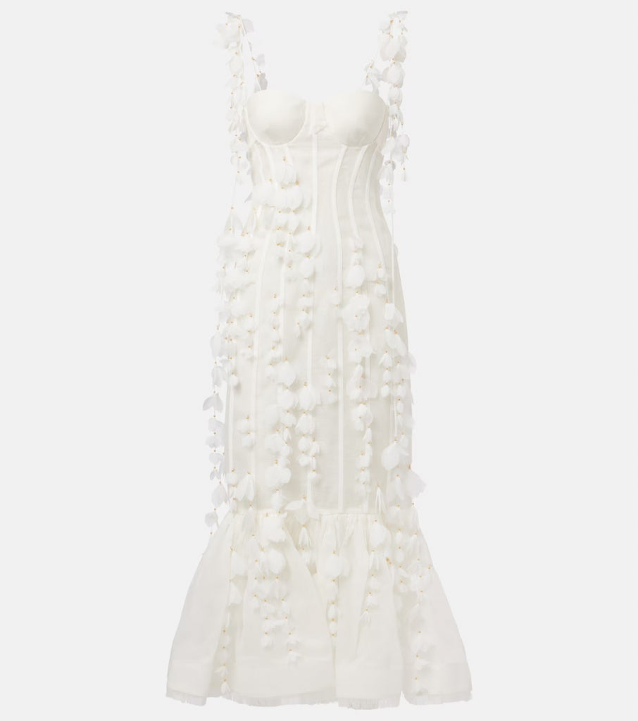 Zimmrrm An color ivory talla 0 petite tirante delgado lino petalos sobre falda con plegues
